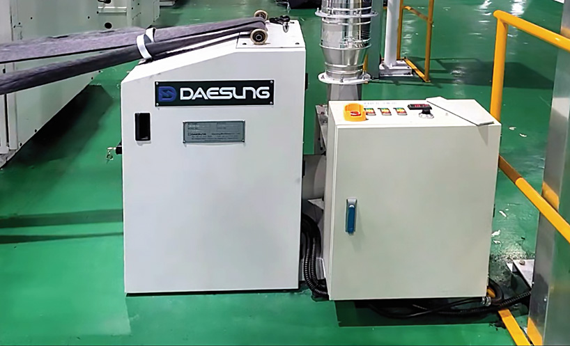 - The purpose is to recycle the trimmed edges generated after the needle punching process in the production line.