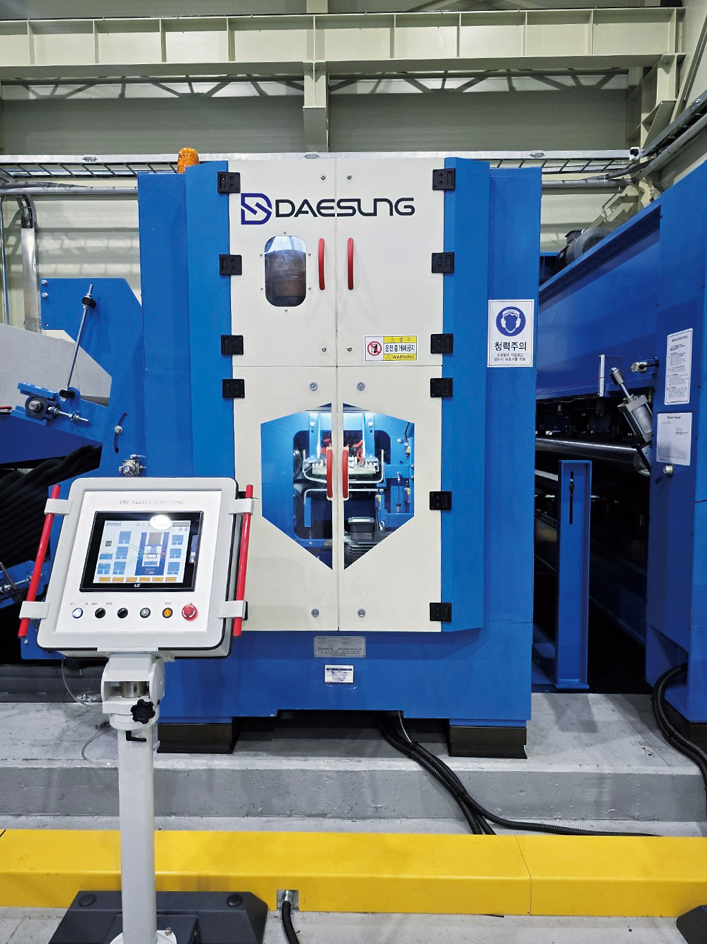 - Web Feeder에서 공급된 압축 web을 1차 니들 펀칭하여 조직이 결속되고 일정한 두께의 부직포 원단을 형성한다.